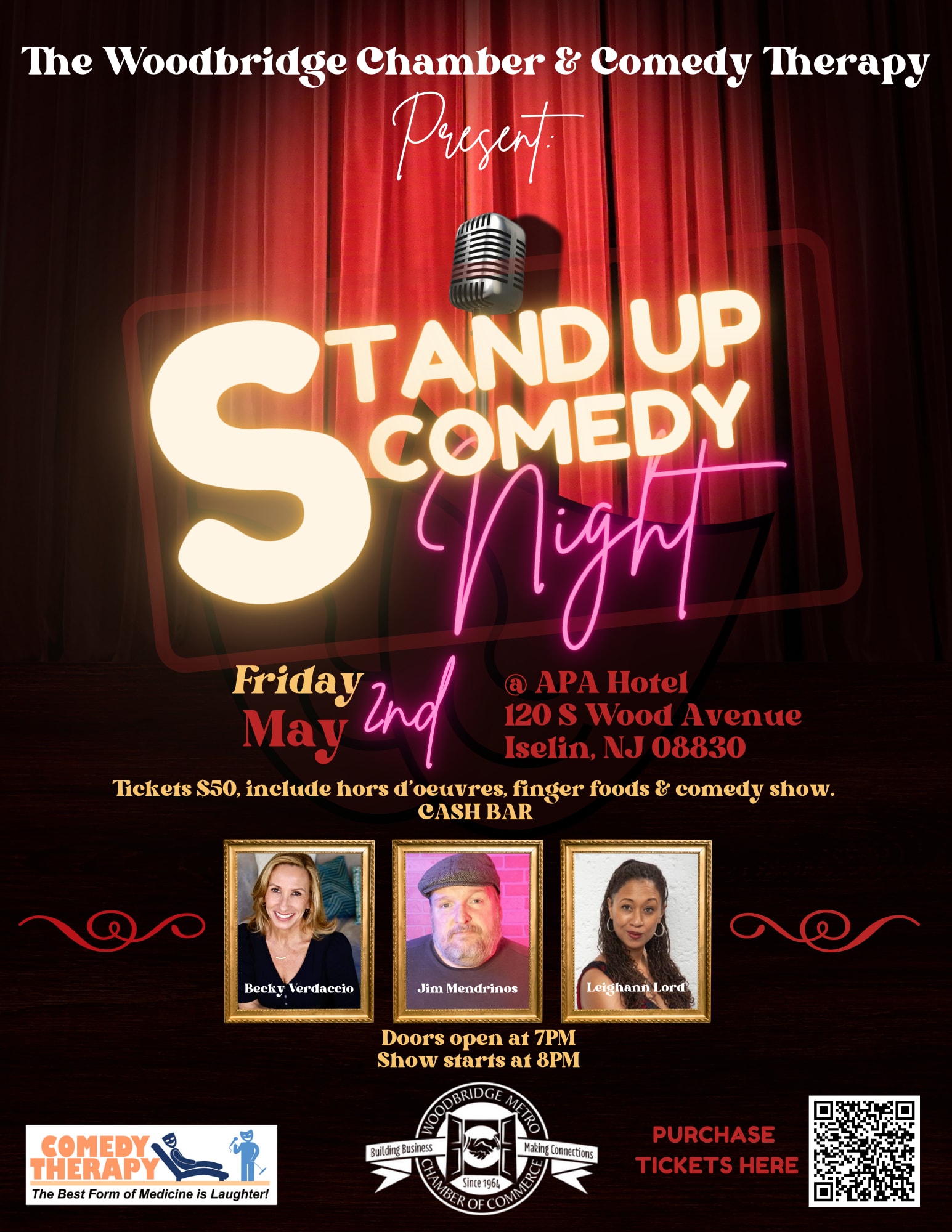 $50 pp, includes Hors d'oeuvres, finger foods & comedy show.