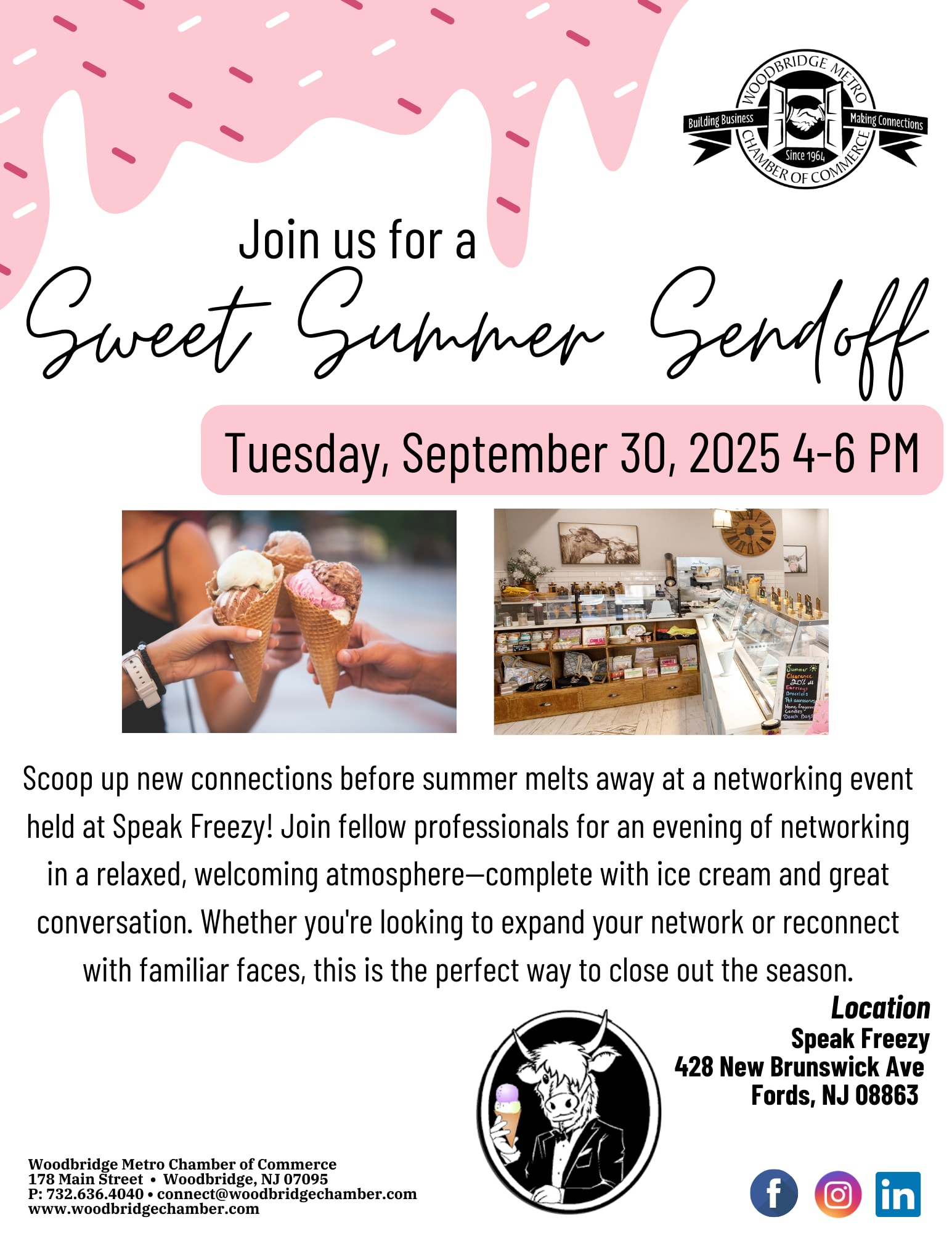 Scoop up new connections before summer melts away at a networking event held at Speak Freezy! Join fellow professionals for an evening of networking in a relaxed, welcoming atmosphere—complete with ice cream and great conversation. Whether you're looking to expand your network or reconnect with familiar faces, this is the perfect way to close out the season.Images
