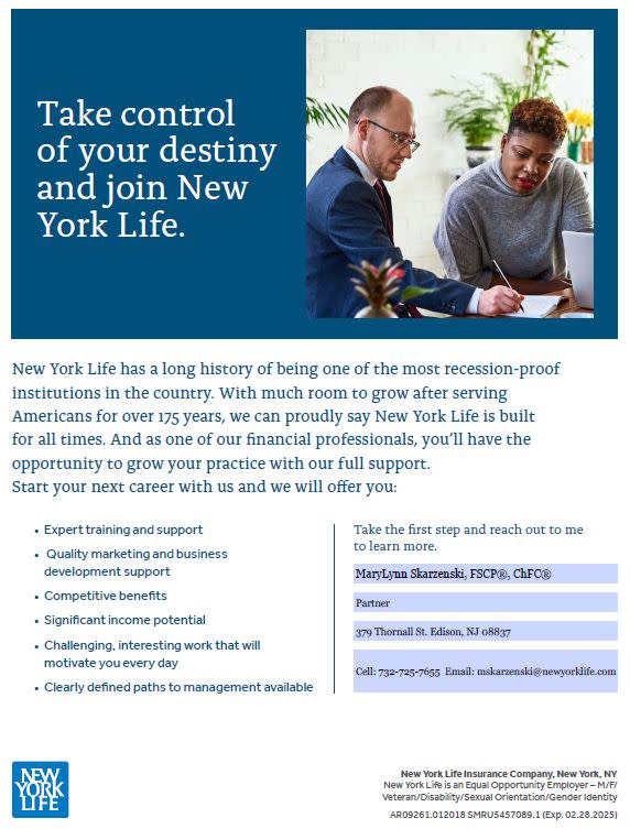 If the answer is yes, consider becoming an insurance agent* to drive positive impact in the lives of families every day. At New York Life, you’re in control of your career journey. Backed by a Fortune 100 company that is a leader in the financial services industry, New York Life will invest in you from the start, training you in valuable skills such as marketing, customer relationship management (CRM) and communication, and providing you with a development team and sales support to guide your success.